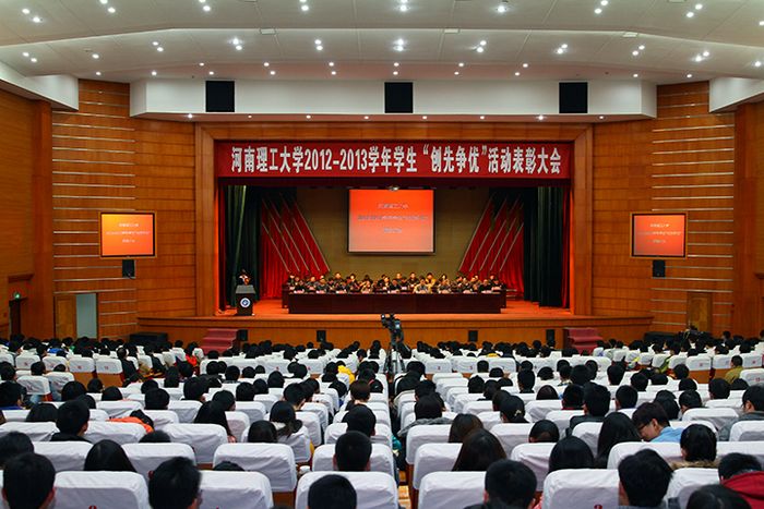 11月26日下午,河南理工大学2012—2013学年学生“创先争优”活动表彰大会在明德楼音乐厅召开。校党政领导张国臣、周志远、卫中玲、张战营、张锟出席会议,各学院、相关职能部门负责人、校友代表、及学生代表600余人参加会议。会议由校党委副书记兼纪委书记张国臣主持。