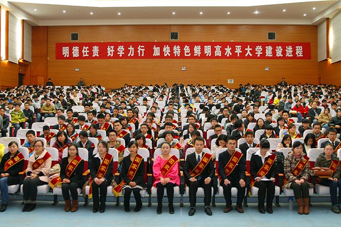 校党委副书记周志远发表讲话,他首先向在“创优争先”活动中获得表彰的先进集体和先进个人表示祝贺,向校友代表陈兆强表示欢迎,对学生在“创先争优”活动中的积极表现给予充分肯定。随后,他向同学们提出三点希望:一是要坚定理想,牢记使命,为推动中国特色社会主义事业发展贡献自己的青春、智慧和力量;二是要学习先进,争当模范,为学校争得荣誉,为学生树立榜样;三是勇于实践,增长才干,努力成为高素质复合型创新人才。最后,他号召广大师生牢记使命,以只争朝夕的精神,传承发扬“好学力行”的校风和“勤勉求实”的学风,勤奋学习,团结创新,开拓进取,为实现全面建设小康社会伟大目标和加快建设创新型国家做出自己应有的贡献。