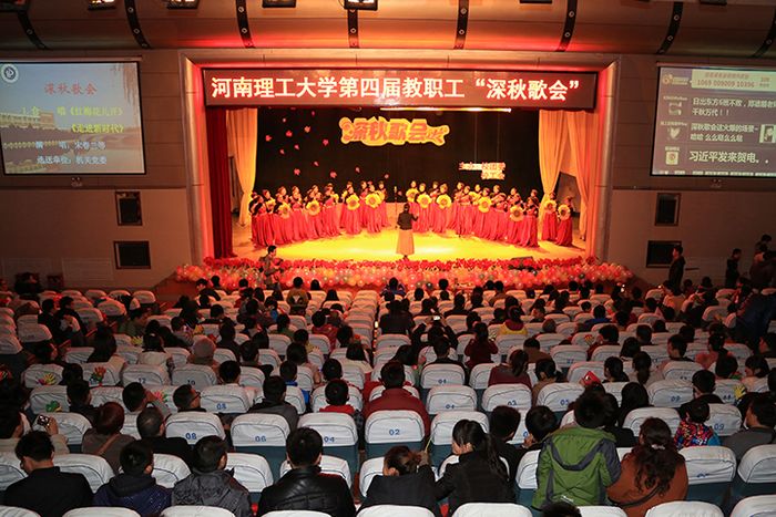 迢迢深秋夜,默默教师情。情献舞榭歌台,共谱别样精彩。11月15日晚,在校团委和校工会的精心策划下,我校第四届教职工深秋歌会在南校区小礼堂隆重举行。机关党委书记黄保金、机关党委副书记杨波、校团委副书记阎俊豪及各学院领导老师莅临现场,与千余名师生欢聚一堂,共享此次精彩演出。