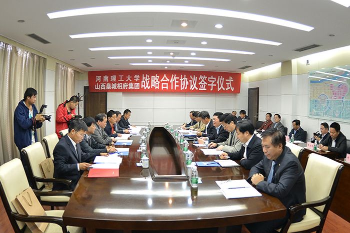 10月17日上午,我校与山西皇城相府(集团)实业有限公司战略合作协议签署仪式在行政楼二楼会议室举行。山西皇城相府(集团)实业有限公司总经理陈晓栓、副总经理王永斌、陈家应、王胜利,校长邹友峰、校党委副书记周志远、副校长周英出席签字仪式,相关职能部门和学院负责人参加仪式。陈晓栓与邹友峰代表双方在合作协议上签字。仪式由周志远主持。