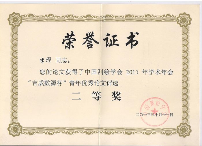 中国测绘学会第十次全国会员代表大会暨2013年综合学术年会于10月11日在北京召开,中国测绘学会综合学术年会是我国测绘地理信息领域最高水平的学术盛会,本届大会的主题为“实干 创新 共赢 发展——发展测绘地理信息,助推美丽中国建设”。大会组委会在颁奖仪式上宣布,我校测绘学院2011级硕士研究生李珵撰写的论文《三维激光扫描隧道断面形变监测精度验证》荣获中国测绘学会2013年“吉威数源杯”青年优秀论文二等奖。本届年会在全国青年科技工作者投稿中评选出青年优秀论文一等奖3项,二等奖12项,三等奖19项,李珵同学与来自武汉大学、总参测绘研究所、山东科技大学等院校和科研院所的青年科技工作者共同获得二等奖。中国测绘学会理事长、国家测绘地理信息局李维森副局长,以及陈俊勇院士、李德仁院士、宁津生院士、刘先林院士、龚健雅院士、郭华东院士、徐其凤院士、李建成院士等领导和专家为获得青年优秀论文一等奖、二等奖获奖者颁奖。这是我校研究生首次在中国测绘学会青年优秀学术论文征文中获得的最高奖项,充分表明了河南理工大学测绘学科研究生培养水平已经跻身全国先进行列,同时也提升了我校在全国测绘领域的知名度和影响力。