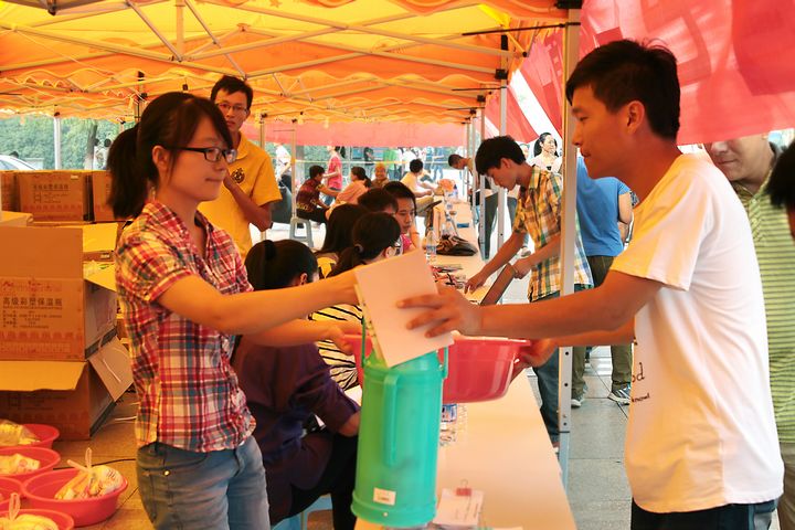 工作人员正在为家经济困难学生免费发放生活用品