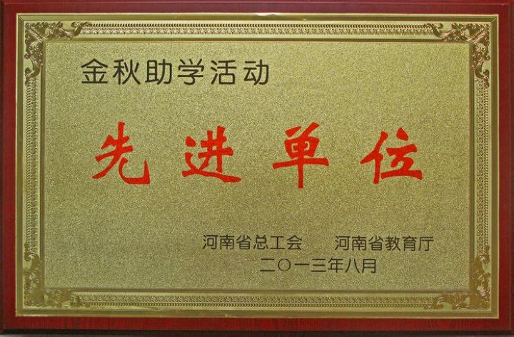 河南省金秋助学活动先进单位奖牌