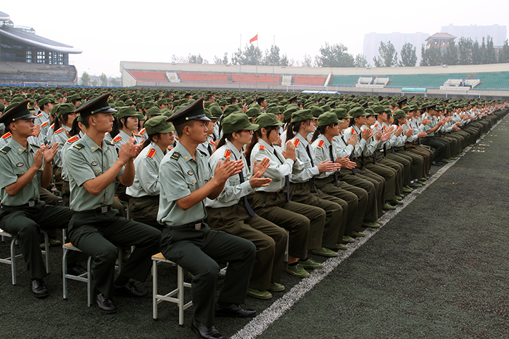 9月9日上午,学校在南校区新体育场隆重召开2013级新生军训暨国防教育动员大会。校党委副书记周志远、副校长景国勋、中国人民解放军71426部队副部队长张建初上校、军训团政委冯波少校出席会议,学校军训工作领导小组相关同志和2013级全体新生参加大会。大会由校党委武装部部长芦保宏主持。