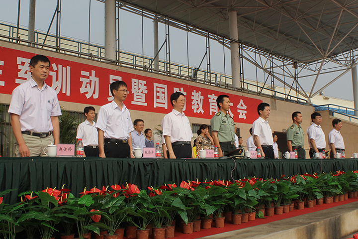 大会在雄壮激扬的《中国人民解放军进行曲》中拉开帷幕。首先,景国勋代表校党委、行政向前来我校指导军训工作的中国人民解放军71426部队全体官兵表示热烈欢迎并致以崇高敬意,向参加军训的同学们致以亲切的问候,并简要介绍了71426部队的光荣传统和我校在“双拥”工作中与部队结下的深厚友谊,真诚感谢部队首长长期以来对我校学生军训、国防教育以及人才培养给予的大力支持和帮助。