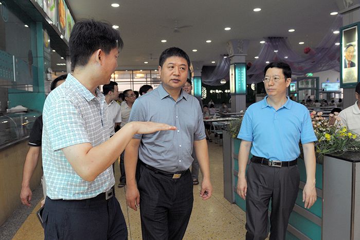 汇报会结束后,在相关单位负责同志的陪同下,督查组一行来到学子餐厅,进入食物储存库和食品加工间检查工作,并与就餐学生亲切交谈。