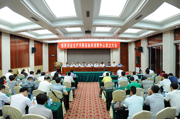 7月18日上午,煤炭安全生产河南省协同创新中心成立大会在河南省黄河迎宾馆迎宾会堂举行,河南省工业和信息化厅副厅长陈党义、河南省教育厅科技处副处长张水潮出席会议,包括中心理事会成员和学校教师代表在内的60余人参加会议。大会由中心主任、副校长周英主持。