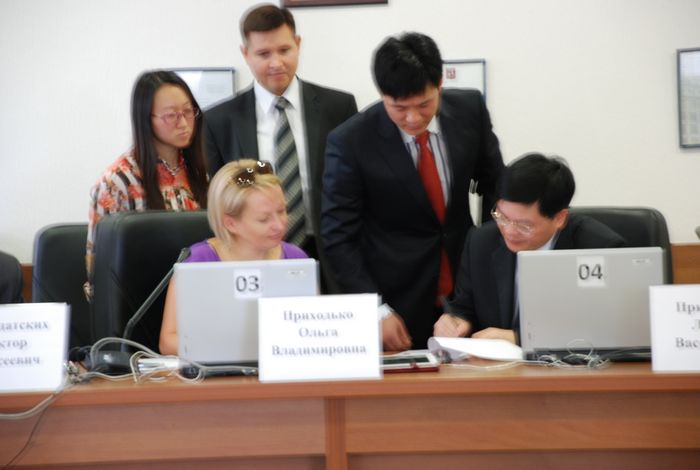 8月2日,邹友峰一行在普里哈基卡·奥丽嘎·弗拉基米罗夫娜(Приходько Ольга Владимировна)副校长的陪同下参观了莫斯科国立经济统计信息大学招生办公室、国际交流礼品展览室等场所后进入了会场。奥丽嘎和邹友峰分别介绍了各自学校的概况与特色,并在愉快的气氛中签订了两校合作交流协议书。莫斯科国立经济统计信息大学始建于1932年,1949年改建为莫斯科经济统计学院,1996年更名现校名至今,它是俄罗斯经济领域最著名的高校之一,其网络教学也是俄罗斯最好的高校之一。
