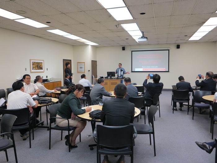 圣克劳德州立大学人力资源部主任Holly J.Schoenherr、理工学院院长Daniel D.Gregory、文理学院院长Mark Springer等与考察团成员进行座谈,分别介绍相关职能部门和学院基本情况,并与我校考察团成员进行深入而又广泛的交流。接着,考察团成员参观圣克劳德州立大学相关学科实验室。最后,圣克劳德州立大学继续教育学院院长John Burgeson博士为考察团成员作了题为《美国大学的继续教育》的专题讲座。