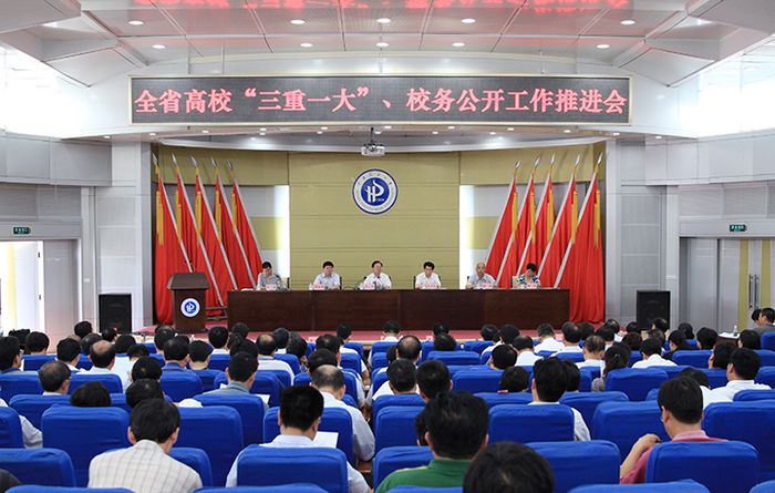 7月2日上午,全省高校“三重一大”、校务公开工作推进会在我校学术报告厅召开。省高校纪工委书记李功勋、副书记李森、王瑜,省高校纪工委正处级纪检监察员程云,校党委书记王少安、校长邹友峰等领导出席会议,全省94所公办高校的纪委书记和我校中层正职参加会议。会议由王瑜主持。