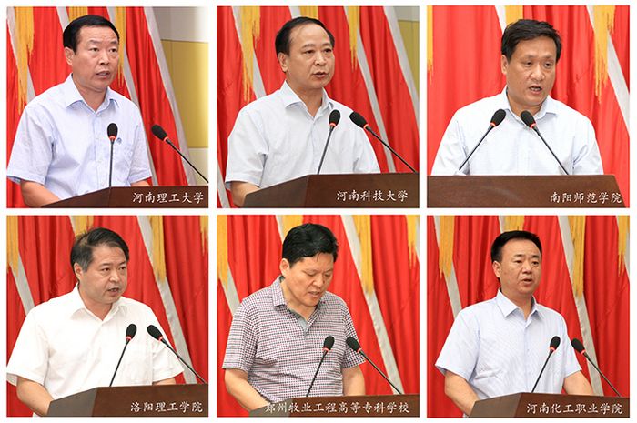 河南理工大学、河南科技大学、南阳师范学院、洛阳理工学院、郑州牧业工程高等专科学校、河南化工职业学院等六所高校的代表分别作了典型发言。