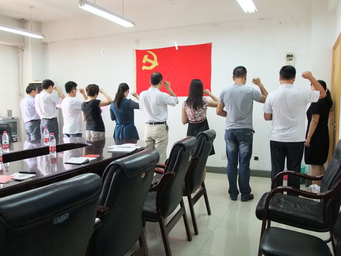 7月1日下午,机关党委在力行楼二楼会议室召开机关新党员入党宣誓暨老党员重温入党誓词大会,回顾党的光荣历史,共庆党的光辉节日。来自机关6个支部的8名新党员和部分老党员代表参加了大会,大会由机关纪委书记杨波主持。