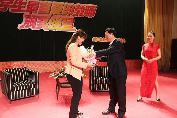 4月28日晚,第二届“学生最喜爱的教师”颁奖晚会在小礼堂成功举办。校长邹友峰,副校长张琨、景国勋,校工会主席杨建堂出席晚会并为获奖教师颁奖。近千名师生共同观看晚会。