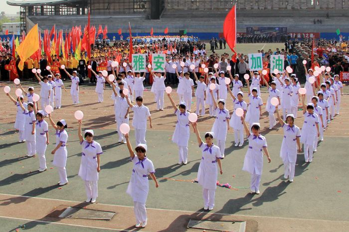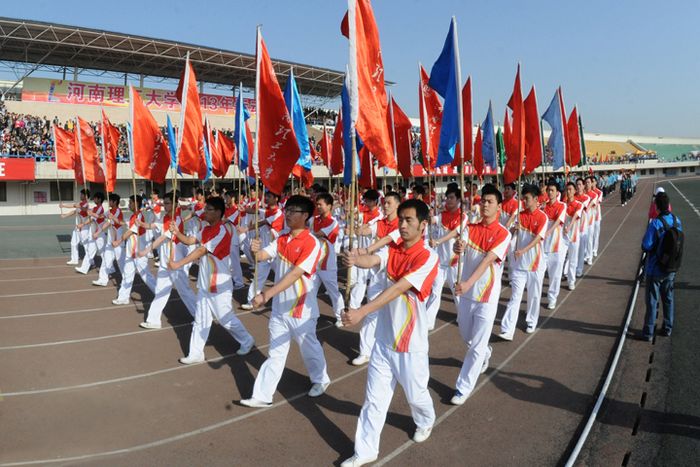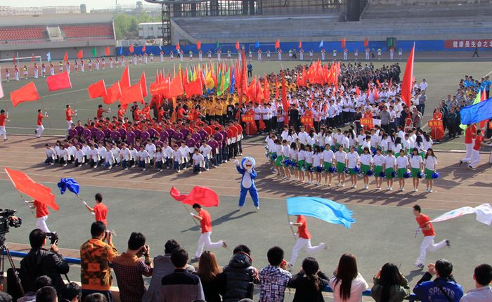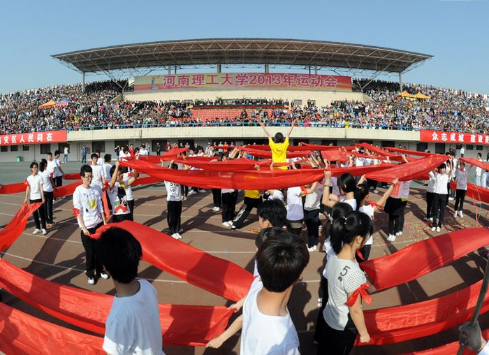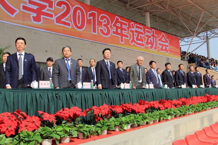4月25日上午,学校2013年体育节暨运动会在南校区新体育场隆重开幕。校党委书记王少安,校长邹友峰,学校教授、美国工程院院士彭赐灯,校党委副书记兼纪委书记张国臣,校党委副书记周志远,副校长周英、张战营、张锟、景国勋,校工会主席杨建堂出席开幕式,校体育运动委员会全体委员、各学院及相关职能部门负责同志和全校10000余名师生参加了开幕式。体育节暨运动会开幕式由体育学院党委书记、院长马明主持。