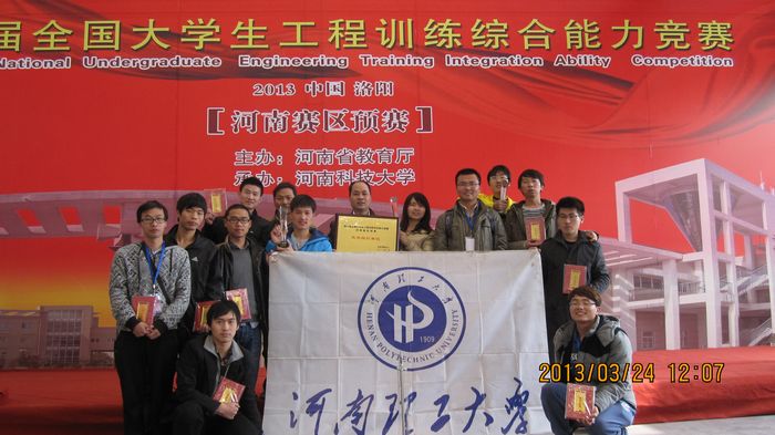 3月23—24日,由河南省教育厅主办的第三届全国大学生工程训练综合能力竞赛河南赛区预赛在河南科技大学举行,竞赛主题为“无碳小车越障行走”,来自河南科技大学、河南工业大学、中原工学院等全省10所高校的35支代表队参加了比赛。我校共派出4支代表队参加S型和8字型竞赛项目,经过激烈角逐,S型项目获一等奖1项,二等奖1项,8字型项目获二等奖1项,三等奖1项。此次竞赛活动,我校参赛队伍发挥稳定,S型项目获得了参加6月8日在大连理工大学举行的国家级赛事资格。