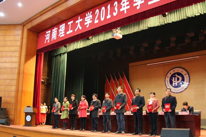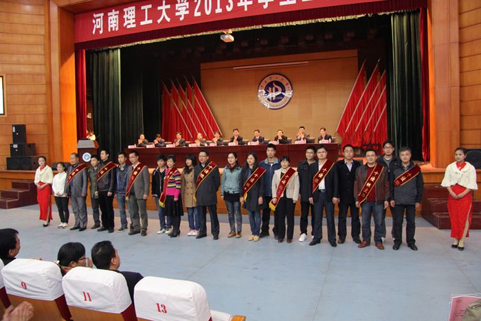 副校长张战营宣读了2012年学生工作获省级以上嘉奖的先进集体和先进个人、校级学生工作先进单位、早操早读先进单位以及“十佳辅导员”、“十佳班主任”名单。学生代表为“十佳辅导员”、“十佳班主任”佩戴绶带,校领导为获奖集体和个人颁发了奖牌和荣誉证书。“十佳辅导员”和“十佳班主任”代表汪志英、熊祖强分别作了交流发言。