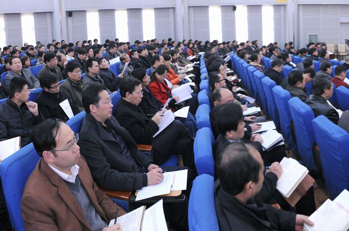 3月3日上午,2013年度学校工作会议在力行楼学术报告厅召开。校党政领导王少安、邹友峰、张国臣、周志远、周英、卫中玲、张战营、张锟、景国勋、杨建堂出席会议,全体中层干部、教授、学院党政办公室主任等300余人参加会议。会议由校党委书记王少安主持。