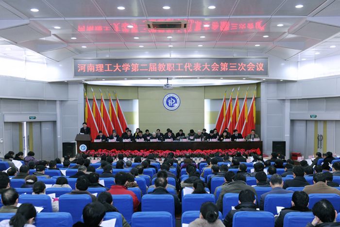 校长邹友峰在大会上作了题为《推进内涵建设,提高办学质量,不断加快特色鲜明高水平大学建设步伐》年度工作报告。报告回顾了学校2012年度的主要工作和取得的成绩,指出了当前工作面临的挑战,并对2013年主要工作作了初步展望。校党委副书记兼纪委书记张国臣、校工会主席杨建堂分别就《河南理工大学章程(草案)》和《河南理工大学教职工代表大会实施细则(草案)》向大会作了说明。会后,各代表团分别围绕工作报告和《章程》、《细则》草案展开热烈、充分的讨论,并提出了许多建设性意见和建议。