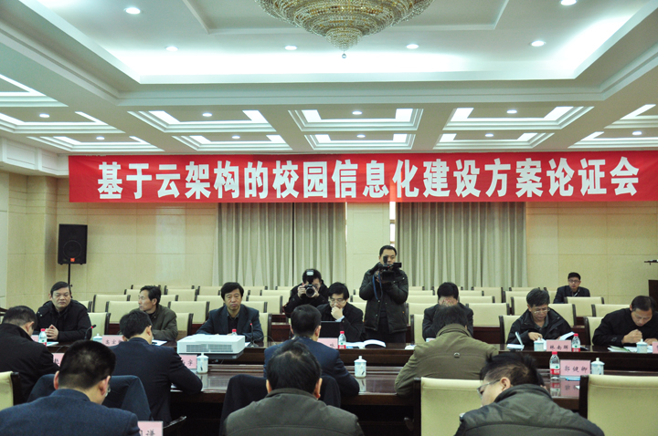 为加强我校校园信息化建设,更好地为教学、科研、管理和公共服务提供支撑,为广大师生提供高效、便捷、丰富的一站式信息服务,以及为各级管理部门提供实时有效的决策信息,实现校园网络化、资源信息化和管理科学化,提高学校的工作效率、管理效率、决策效率和核心竞争力,2012年12月31日,在我校力行楼一楼方型会议室举行了“河南理工大学校园信息化建设方案论证会”。教育部《教育信息化十年发展规划(2011-2020年)》编制专家组成员、复旦大学信息化办公室主任宓咏教授,河南省教育科研计算机网网络中心主任、郑州大学副校长王宗敏教授,教育部《教育信息化十年发展规划(2011-2020年)》编制专家组成员、中山大学信息与网络中心主任郭清顺教授、华南师范大学网络中心主任林南晖教授、河南师范大学网络中心主任高宏卿教授等7名省内外专家应邀参加了论证会。副校长景国勋、学校信息化建设与管理领导小组全体成员及现代教育技术中心技术骨干参加了会议。专家欢迎仪式由现代教育技术中心主任沈记全教授主持。