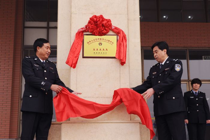 省公安厅出入境管理局局长白建民、市公安局副局长宋新民揭牌