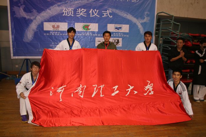 11月15日至19日,由中国大学生体育协会跆拳道分会主办,湖南涉外经济学院承办,湖南省教育厅、湖南大学、中国大学生体育协会华中区培训基地协办的“2012年中国大学生华中区跆拳道联赛”在湖南省长沙市湖南涉外经济学院拉开帷幕。华中区包括湖南省、湖北省、河南省、江西省,共有来自中国地质大学、湖南大学、华中师范大学、武汉大学、武汉体育学院等32所院校的276名运动员参加了此次比赛。此次比赛,体育学院领导高度重视,体育学院党委书记兼院长马明亲自领队,教练员为体育学院跆拳道专职教师兼我校跆拳道俱乐部总教练常朝阳老师,运动员由来自资环学院、建艺学院、机械学院、计算机学院的4名同学组成,他们均在我校跆拳道俱乐部长期受训,有着深厚的跆拳道训练基础。经过2天鏖战,我校代表队斩获1银2铜,其中来自资环学院的李俊同学获得-54KG级银牌,来自建艺学院的张研理同学获得+87KG级铜牌,另我校代表队还赢得了3人团体比赛的铜牌。