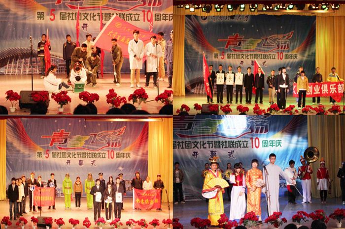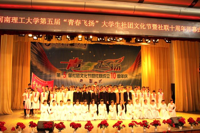 青春飞扬,放飞梦想。11月4日上午,由校团委、社团联合会主办,各学生社团承办的第五届“青春飞扬”大学生社团文化节暨庆祝学生社团联合会成立十周年活动开幕式在我校南校区小礼堂隆重举行。我校党委副书记周志远,校党委宣传部、学工部(处)、教务处、校团委相关负责同志,各学院团委负责人、部分社团指导老师及我校各学生组织代表等千余名师生参加了开幕式。西安交通大学、山东大学、郑州大学等几十所省内外兄弟高校社团管理部门为本次社团文化节暨社联成立十周年庆发来贺辞贺电,焦作电视台、焦作日报等媒体对活动做了现场报道。