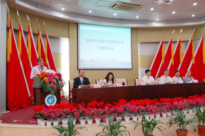 副校长景国勋在致辞中首先向前来参加本次会议的专家,学者表示热烈欢迎,真诚感谢各位专家学者对我校尤其对外语教学等方面给予的大力支持和帮助。景国勋还热情介绍了我校办学历史、人才培养、科学研究以及外语教学与科研、学科建设等方面的情况;并希望以此次会议举办为契机,加强学术交流,进一步提升我校外语教学水平和科研能力,并预祝大会圆满成功。河南外国文学协会会长高继海教授、美国文学研究会会长刘海平教授相继致辞,他们认为在当代开放、多元、巨变的语境中,当代外国文学的人文精神与价值重构越来越成为作者和读者关注的焦点。因此,此次研讨会的主题选题精确,为我国当代外国文学研究起着鞭策和激励作用。之后《当代外国文学》主编杨金才教授介绍了当代外国文学研究特色,指出本次研讨会的宗旨和主要议题,并预祝大会圆满成功。