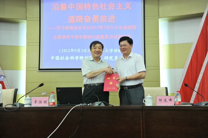校长邹友峰为李慎明教授颁发聘书