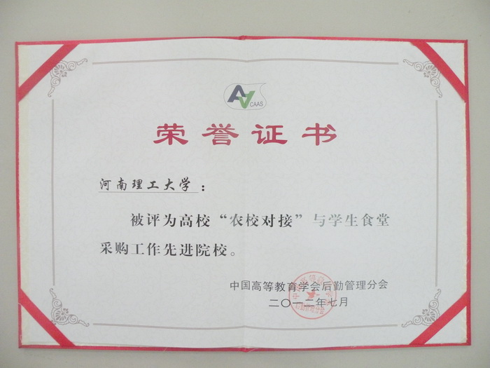 会上,我校被评为全国高校“农校对接”与学生食堂采购工作先进院校,并颁发了奖牌、奖状,副校长卫中玲代表学校出席会议并接受表彰。这是我校认真贯彻落实国家五部委联合下发的《关于进一步加强高等学校学生食堂工作的意见》(教发〔2011〕7号),确保学生食堂安全稳定而取得的创先争优成果,也是我校学生食堂工作首次获得的全国级荣誉。