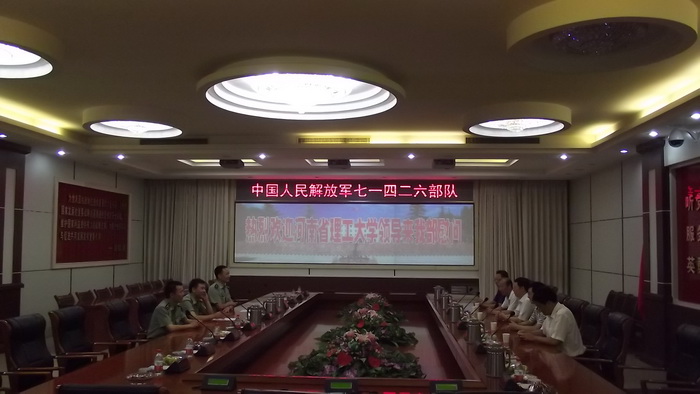 在中国人民解放军建军85周年来临之际,7月23至24日,副校长景国勋带领武装部、学生处、教务处等有关部门负责人,先后到驻焦71426部队、焦作军分区、解放区武装部等单位走访慰问,并代表学校为官兵送去了慰问品。
