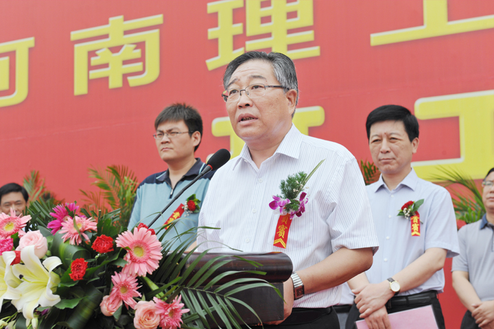 河南省国家大学科技园总经理刘华代表省教育厅、科技厅、河南省国家大学科技园致辞,指出大学是科技创新的主体,大学科技园是以大学为依托,将大学的综合智力资源优势与其它社会优势资源相结合,为科技成果转化、高新技术企业孵化、创新创业人才培养、产学研结合提供支撑的平台和服务的机构。建设和发展大学科技园是党中央、国务院的一项重要战略决策。作为百年名校,河南理工大学厚积薄发,率先以“一校一园”模式自主建设大学科技园,必将对我省高等教育发展及人才培养模式改革和创新创业人才培养体制产生重大而深远的影响,为全省科技产业结构调整及探索建立“政府-高校-企业-科研院所”协同创新的机制和体制起到重要的推动和促进作用。