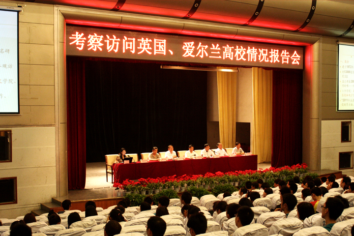 6月1日晚,学校在大学生活动中心礼堂举行访问英国、爱尔兰高校情况报告会,校党委书记王少安和访问团全体成员出席报告会,详细介绍了访问期间的主要成果及所见所闻。