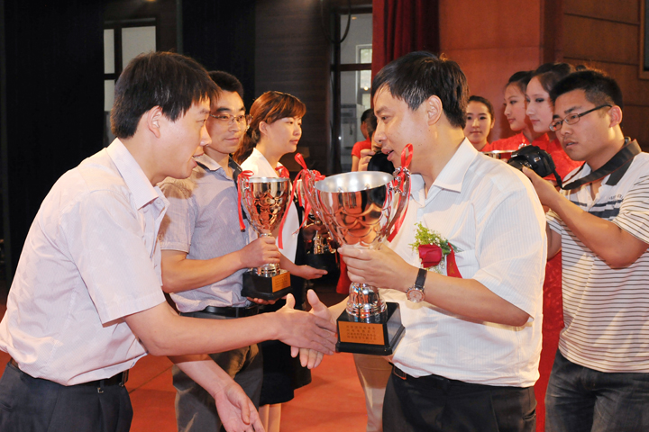 校党委书记王少安在颁奖典礼上致辞。他指出,创业是青年大学生磨砺意志、增长才干的重要课堂,加强创业教育,培养富有创意思维、创新意识、创造能力和创业精神的高素质人才,已成为深入实施“科教兴国”战略、实现中华民族伟大复兴的时代要求。在省委、省政府及团省委、省教育厅和有关厅局高度重视下,“挑战杯”大学生创业计划竞赛活动已成为河南高教界重要的品牌赛事活动,正在并将深刻影响大学教育的使命与走向。王少安表示,河南理工大学始终高度重视对学生创新精神和实践能力的培养,构建起全方位、多层次创业实践平台,为大学生创新创业创造了良好的环境。学校将以本次大赛为新的起点,全面借鉴兄弟院校的成功经验,进一步加快学生创新创业体系建设,为学生成就创新创业人生、不断加快特色鲜明高水平大学建设进程,以服务国家创新体系和中原经济区建设的优异成绩向党的十八大献礼。