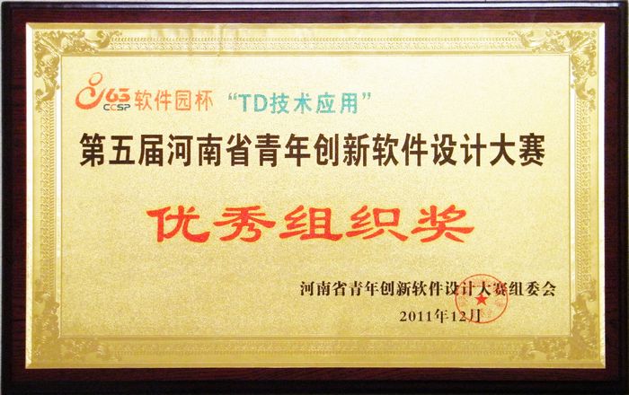 5月16日,第五届河南省青年创新软件设计大赛颁奖典礼在洛阳举行。副省长徐济超及省科技厅、省教育厅、团省委、省发改委、省财政厅、省工信厅、省人社厅、郑州国家高新区等单位相关领导出席了颁奖盛典并为获奖单位和个人颁奖。我校再次被授予“优秀组织奖”荣誉称号,这是我校自2005年参加首届省青年创新软件设计大赛以来连续五年获得此项殊荣,同时,学校计算机学院申自浩老师的作品获得“软件创意奖”二等奖。校团委副书记闫俊豪参加了颁奖典礼,我校音乐学院师生为颁奖典礼献上了精彩的文艺节目。