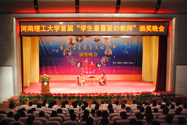 5月16日晚,学校在大学生活动中心隆重举行首届“学生最喜爱的教师”颁奖晚会。晚会由教务处、校团委、学生处联合主办。校党委书记王少安、党委副书记周志远、副校长卫中玲、张锟、景国勋出席晚会并担任颁奖嘉宾。近千名师生观看了晚会。