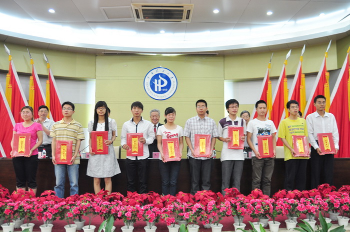 会上,副校长张战营、张锟分别宣读了有关表彰文件。经本人申请、学院推荐学校评审并公示,共有姬玉荣等10名教师、毕鹏飞等30名研究生和本科生分别获得“朱训教育奖励基金优秀教师奖”、“朱训教育奖励基金优秀学生奖”。会上,朱训、邹友峰等与会领导为获奖师生颁发了证书。