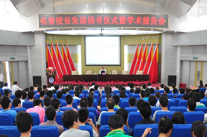 颁奖仪式结束后,朱训还为学校捐赠了图书,并为与会师生作了一场题为《关于中国矿业城市的几个问题》的学术报告。