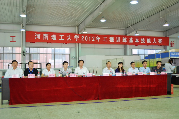 实践求知、知行合一;工程训练、创新育人。为推动实践教学改革,促进创新性人才的培养,全面提升大学生的工程实践能力。5月5日,由教务处、学生处、校团委、机械学院、材料学院、电气学院主办,工程训练中心承办的2012年工程训练基本技能大赛决赛在工程训练中心举行。参加此次大赛开幕式的领导有校机械厂厂长铁占续、教务处副处长原东方、校团委副书记陈昊、学生处副处长许荣梅、机械学院副院长王小林、电气学院副院长郑征、材料学院副院长郭学峰、电气学院副书记王瑞、教务处实践教学科科长邓广涛。大赛开幕式由工程训练中心副主任张英琦主持。