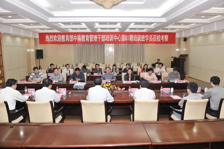 5月1日,教育部中南教育管理干部培训中心第61期培训班学员罗国斌等一行15人莅校考察。学校在力行楼一楼会议室举行座谈会,校党委副书记兼纪委书记张国臣出席会议,党委组织部、党委学工部、校工会、人事处、发规处、毕业生就业服务中心等部门负责同志参加会议。会议由张国臣主持。
