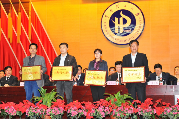 会上,校党委副书记兼纪委书记张国臣宣读了《河南理工大学2011年学生工作获省级以上先进集体和先进个人名单》、《河南理工大学2011年度学生工作先进单位名单》、《中共河南理工大学委员会河南理工大学关于表彰2010-2011学年“十佳辅导员”“十佳班主任”的决定》。学生代表为“十佳辅导员”和“十佳班主任”佩戴绶带,校领导为2011年度学生工作先进单位颁发了奖牌,为“十佳辅导员”和“十佳班主任”颁发了荣誉证书。机械与动力工程学院辅导员王瑞瑞老师、建筑与艺术设计学院班主任何艳冰老师分别代表“十佳辅导员”和“十佳班主任”作典型发言。学生工作部(处)部(处)长邵强宣读了《致全体学生工作者倡议书》,提出了全员育人的三点倡议。