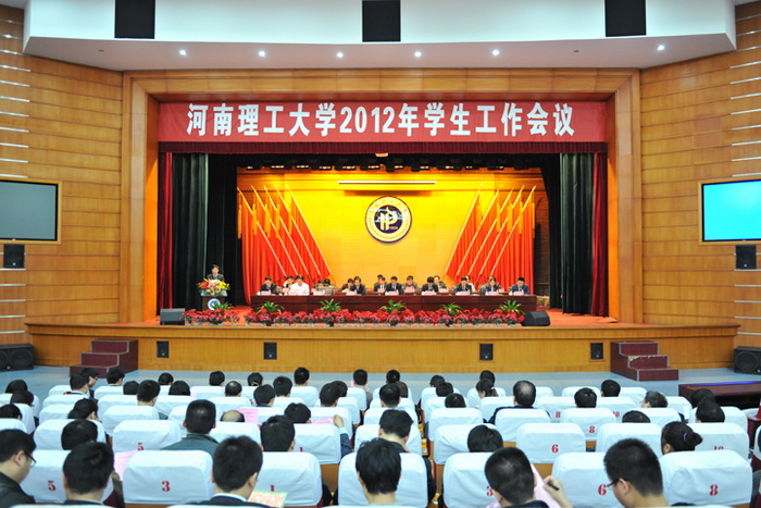 4月24日下午,学校在明德楼音乐厅隆重召开2012年学生工作会议,校领导张国臣、周志远、王裕清、景国勋出席会议。学校相关职能部门负责人,各学院党委书记、副书记,全体辅导员、班主任及学生代表共500余人参加会议。会议由副校长景国勋主持。