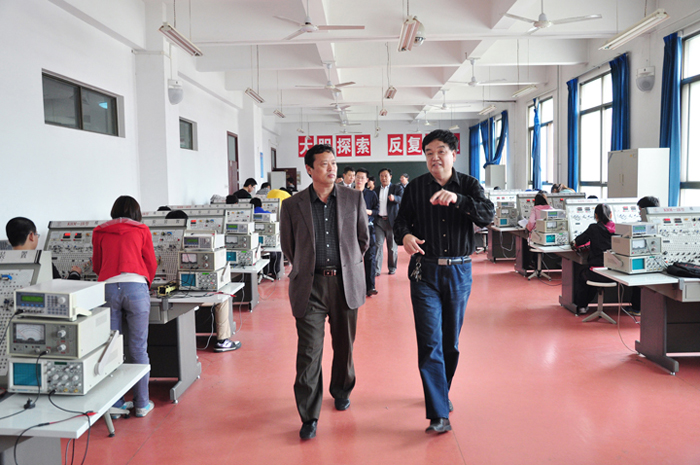 考察期间,薛局长一行视察了国家电工电子实验中心、国家工程训练中心和安全培训产品研发机构。并深入安培学院,对办公场所、教学设施、管理平台等进行实地考察和调研。