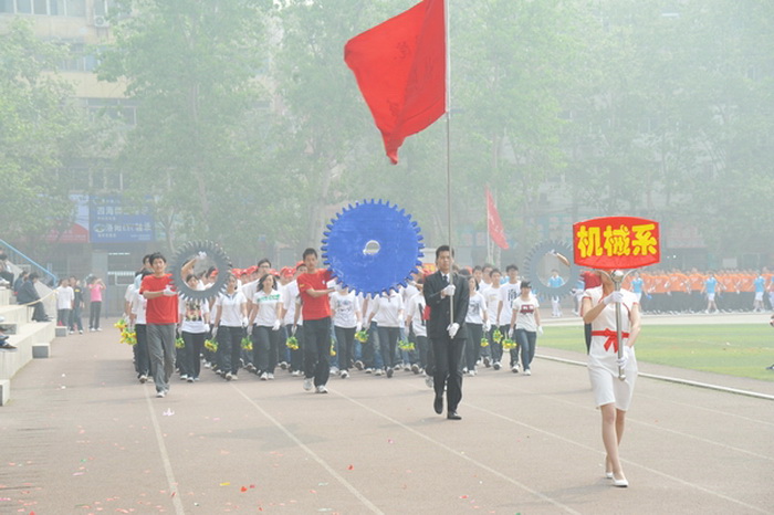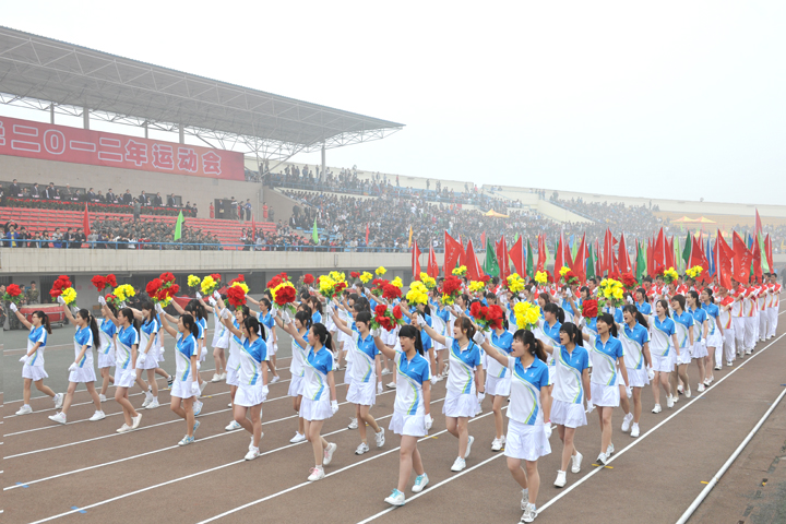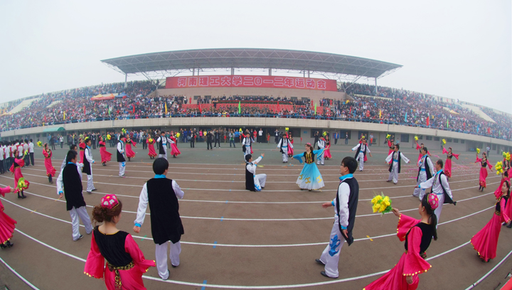 在欢乐而肃穆的氛围中,校党委书记王少安宣布:河南理工大学2012年体育节暨运动会开幕。顿时礼炮隆鸣、烟花齐放、彩旗招展、人声鼎沸,体育场成了一片欢乐的海洋。