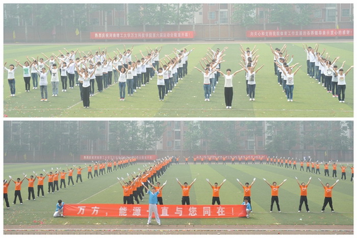 开幕式后,随即举办了第九套广播体操表演赛,各系代表队以变化多姿的队形和昂扬向上的风貌表现了万方学子的风采和对建院十周年的美好祝福。经过激烈角逐,万方学院电气与自动化工程系夺得桂冠,能源与材料工程系、工商管理系分获二、三名。
