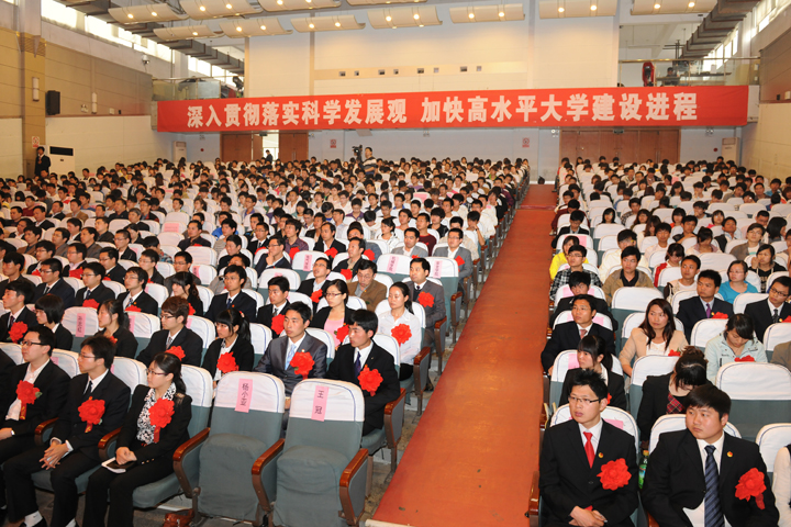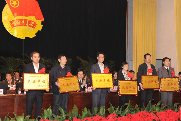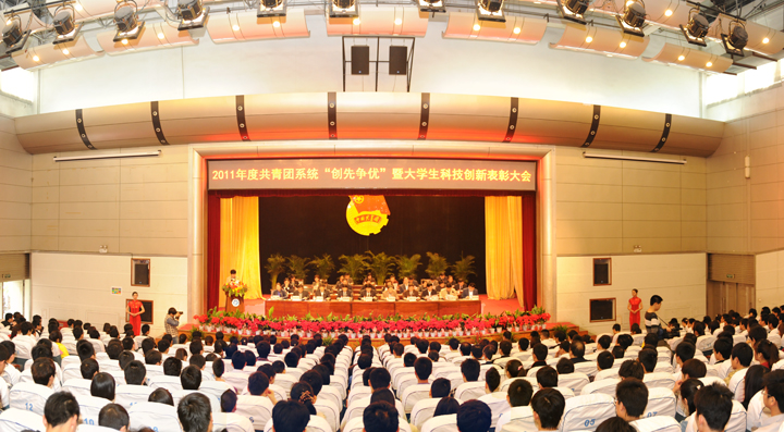 创先争优今成果,回眸奋斗岁月;科技创新竞丰收,再绘宏伟蓝图。4月17日下午,我校2011年度共青团系统“创先争优”暨大学生科技创新表彰大会在我校南校区小礼堂隆重召开。校党政领导周志远、张战营、景国勋,学校相关职能部门负责人和各学院党政领导及七百余名团员青年代表参加了会议。表彰大会由校团委书记王婕主持。