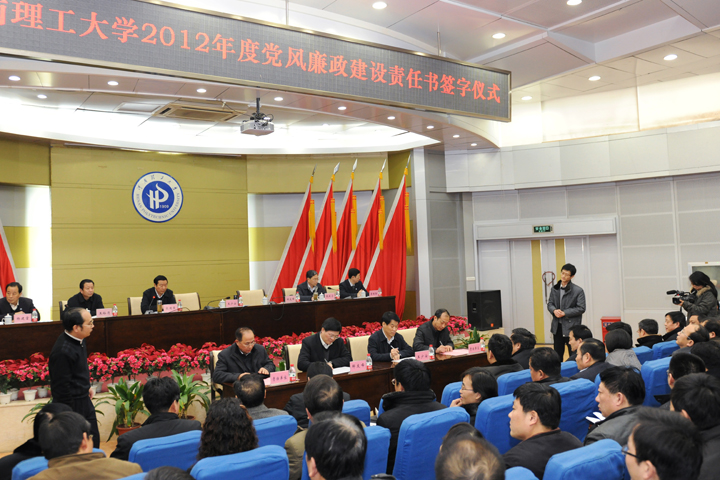 签字仪式上,校党委书记王少安、校长邹友峰分别与安全学院、能源学院等学院代表和宣传部、人事处等职能部门代表签订《2012年度工作目标任务书》和《2012年度党风廉政建设责任书》。