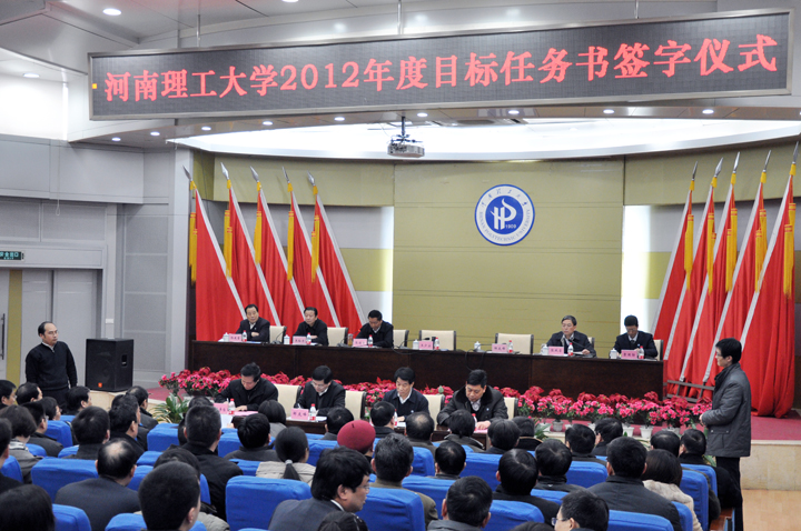 签字仪式结束后,学校领导要求各单位根据学校2012年度党政工作要点和年度目标任务的要求,结合实际情况,精心部署,明确责任,狠抓落实,确保2012年各项工作任务的圆满完成,以优异的成绩向党的十八大献礼。