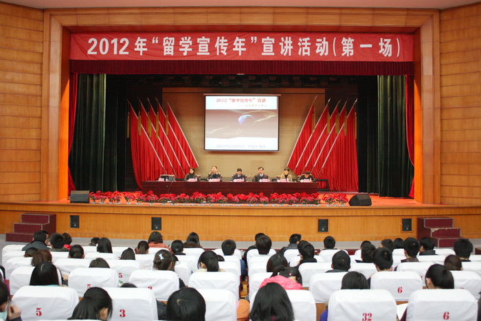3月20日下午,我校在明德楼音乐厅举行2012年“留学宣传年”首场宣讲活动。副校长景国勋,经管学院院长曾旗,国际处处长罗绍河、副处长王秋梅、李新娟等出席宣讲活动;经管学院400余名师生参加讲座。宣讲活动由曾旗主持。