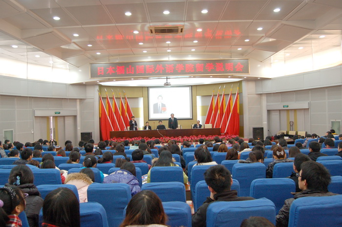代表团一行人介绍了福山国际外语学院的地理位置、周围环境及学校的优势与特色,介绍了日本大学的班制构建与课程设置,日本文部省对于外国留学生的学费减免制度以及针对优秀留学生设立的奖学金制度,还就在日本攻读研究生的条件、留学语言要求、申请签证、学校报到、教学指导、留学生活等方方面面作了详细的说明。