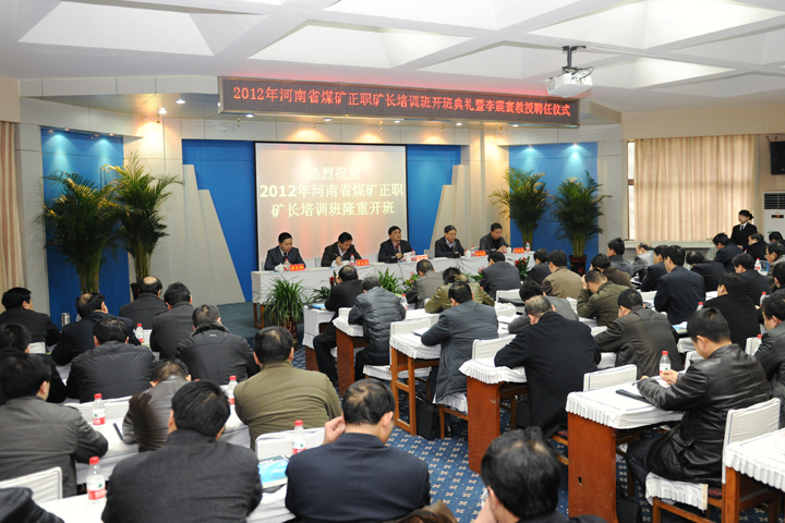 3月2日上午,河南省2012年第一期煤矿正职矿长任职资格证和安全资格证培训班在我校隆重开班。河南省安全生产监管局煤监办常务副主任李震寰、副主任李文正,我校副校长张战营、安全技术培训学院主要负责同志以及来自全省78个煤矿的矿长参加了开班典礼。开班典礼由安培学院院长李德海教授主持。